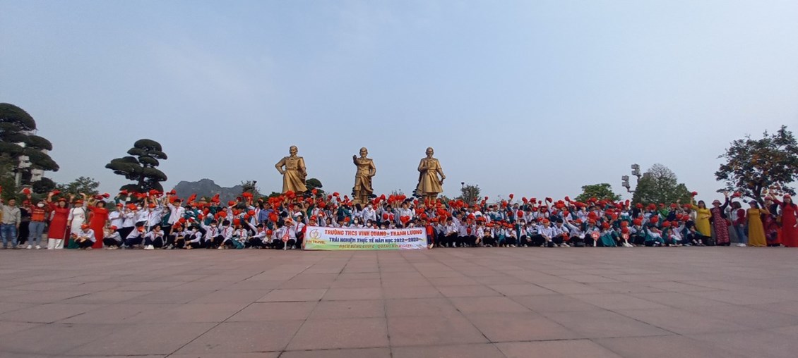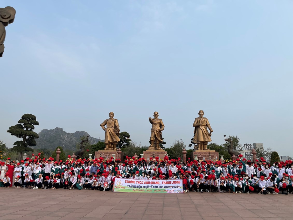 Thực hiện kế hoạch năm học 2022- 2023; căn cứ nội dung cuộc họp phụ huynh cuối học kì 1,được sự thống nhất của BGH, Ban thường trực CMHS, theo nguyện vọng của phụ huynh và học sinh trong toàn trường, các em học sinh Trường THCS Vinh Quang - Thanh Lương đã có chuyến đi trải nghiệm tại khu di tích lịch sử Bạch Đằng Giang - Hải Phòng và khu trải nghiệm Quảng Ninh Gate. HS đã được tham gia rất nhiều hoạt động như làm bánh trôi nước, viết thư pháp, làm gốm, bắt cá bằng tay...