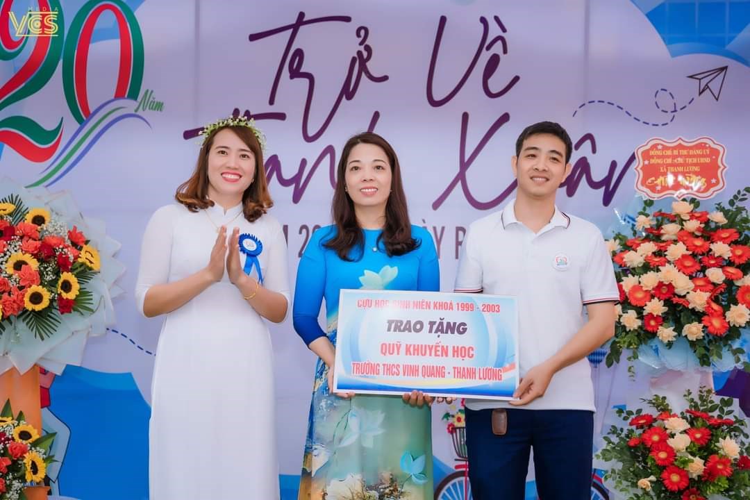 Sự trở về thắm đượm tình nghĩa thầy trò, dạt dào tình cảm với bạn bè, với lớp cũ, trường xưa là món quà tinh thần vô giá đối với nhà trường.Kính chúc tất cả các thế hệ nhà giáo đã và đang công tác tại trường, các cựu học sinh nói chung và các cựu học sinh niên khoá 1999 - 2003 luôn có thật nhiều sức khỏe, thành công,hạnh phúc và luôn hướng về mái trường THCS Vinh Quang - Thanh Lương thân yêu.Trân quý và biết ơn!