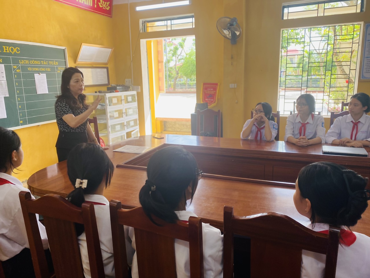 Ngày 26/10/2024, cô Nguyễn Thị Kim Lanh - Hiệu trưởng Nhà trường đã gặp gỡ, trò chuyện với đội tuyển học sinh giỏi lớp 9 trong không khí trang trọng nhưng ấm áp. Với tình yêu thương và sự quan tâm sâu sắc, cô đã dành những lời động viên chân thành, đầy ý nghĩa tới từng em học sinh. Cô nhấn mạnh rằng, ngoài trau dồi kiến thức, các em cũng cần rèn luyện sự tự tin và bản lĩnh để vượt qua mọi thử thách. Cô khẳng định, nhà trường và thầy cô luôn sẵn sàng hỗ trợ, là cơ sở vững chắc để đồng hành cùng các em.