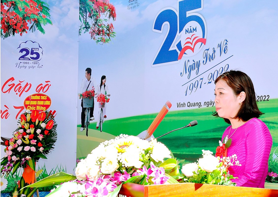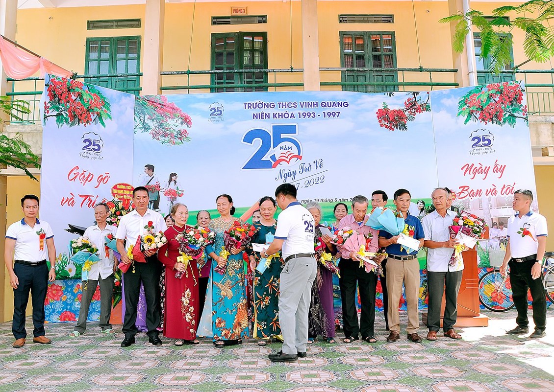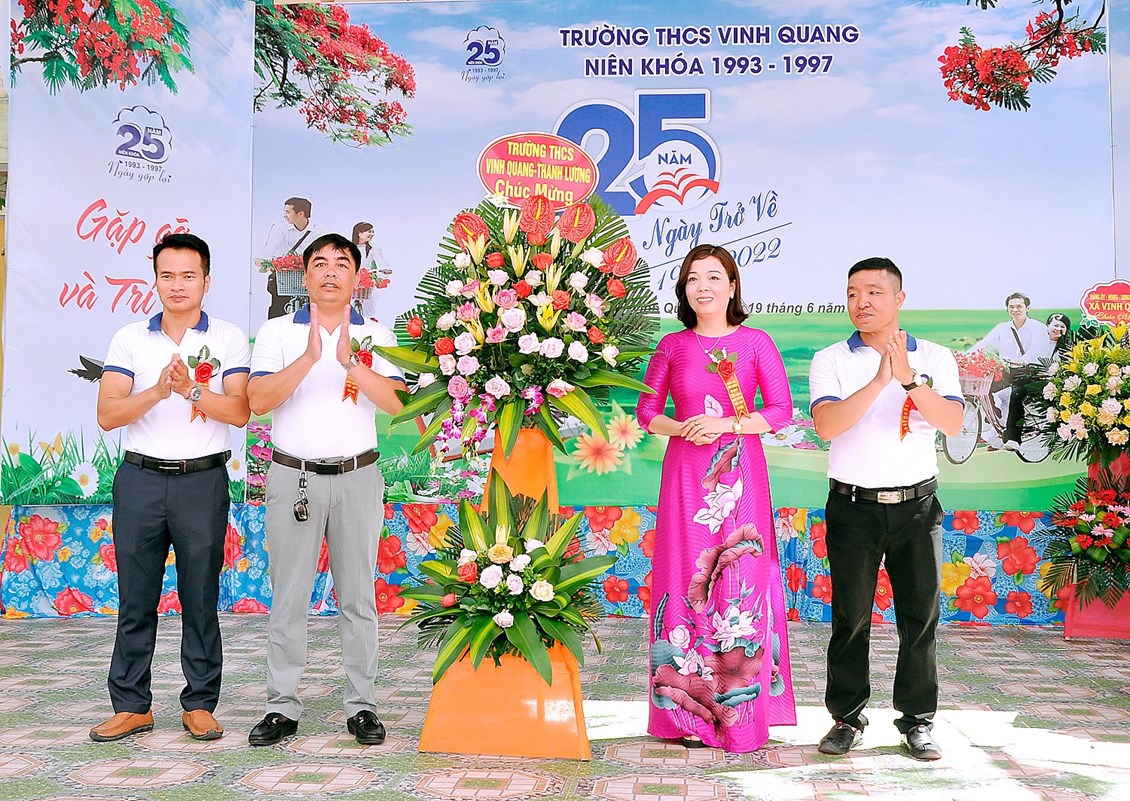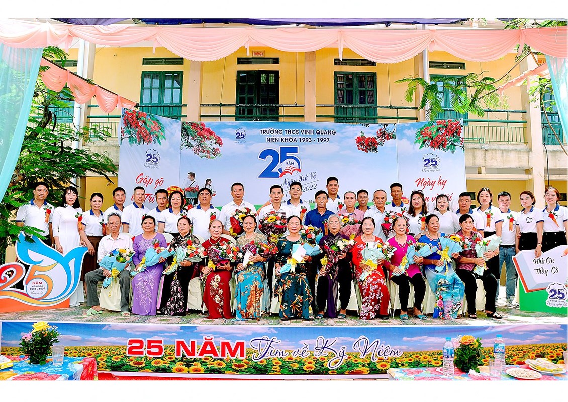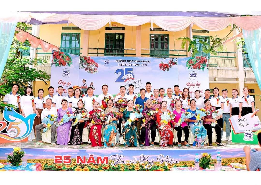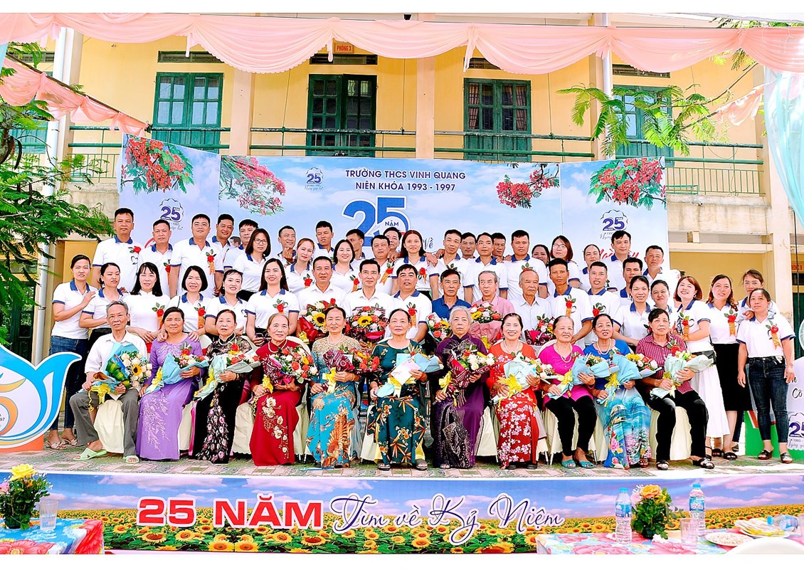 Sau 25 năm ngày ra trường, hôm nay các cựu học sinh niên khóa 1993 - 1997 đã trở về gặp lại bạn bè thân yêu và tri ân thầy, cô. Sự lựa chọn trở về trường xưa lớp cũ, ôn lại những kỉ niệm với thầy cô, bạn bè của các cựu học sinh là món quà tinh thần vô giá đối với nhà trường.Tình cảm của các thế hệ đi trước sẽ là sự động viên, khích lệ, tiếp lửa cho các thế hệ sau. Kính chúc tất cả các nhà giáo đã và đang công tác tại trường, các cựu học sinh nói chung và các cựu học sinh niên khoá 1993 - 1997 luôn có thật nhiều sức khỏe, thành công, hạnh phúc và luôn hướng về mái trường THCS Vinh Quang - Thanh Lương thân yêu. Trân quý và biết ơn!